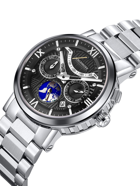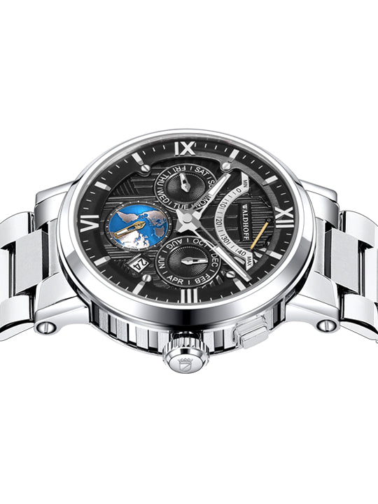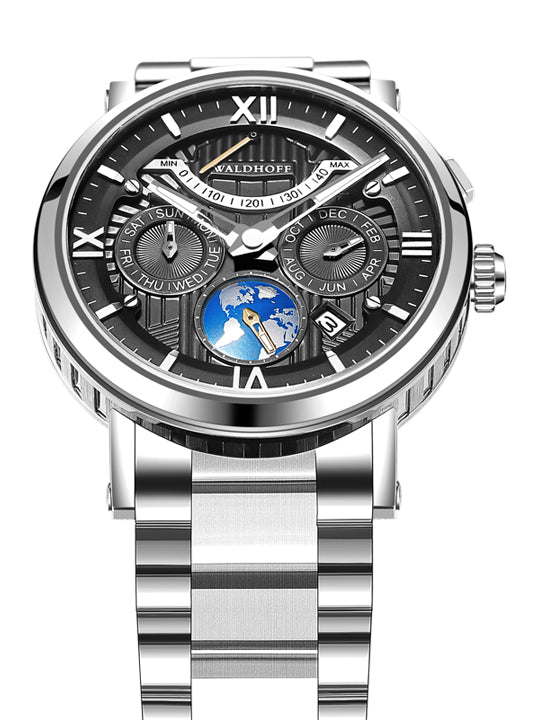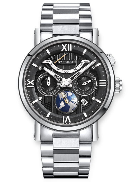 The original Multimatic has put Waldhoff on the map at the very beginning; there would be no business if it weren't for its existence. We wanted to pay homage to this style by designing a new version, improved and refined in many ways. At its heart beats the same time-tested Miyota 9100 premium caliber, a multifunction with automatic winding.